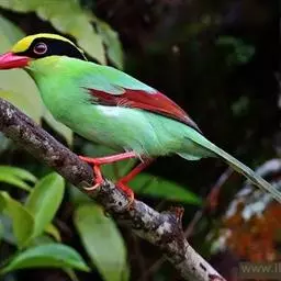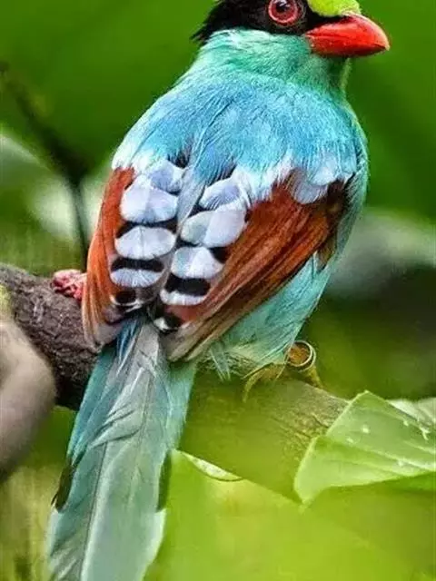 蓝绿鹊:中型鸟类,共有5个亚种。体长36-38厘米。尾长,嘴、脚红色。通体羽色主要为草绿色,…