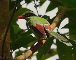 黑额树鹊是雀形目、鸦科的鸟类,体长约38厘米。黑色的尾甚长,上背、背、下腹及尾覆羽棕色。…