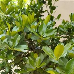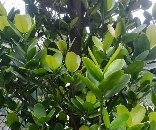 菲岛福木,别名:福木、福树,拉丁文名:Garcinia subelliptica Merr.藤黄科、藤黄属乔木,小枝坚韧粗壮,叶片厚革质,卵形,卵状长圆形或 椭圆形,稀圆形或披针形。花杂性,雄花和雌花通常混合在-起,簇生或单生于落叶腋部;花瓣倒卵形,黄色;子房球形,花柱盾形,5深裂。浆果宽长圆形,成熟时黄色,外面光滑,产于中国台湾南部,台北市亦见栽培。生于海滨的杂木林中。该种是中国沿海地区营造防风林的理想树种。