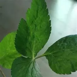 基生叶柄长15-30厘米,叶鞘膜质,抱茎;叶片轮廓呈三角形或三角状披针形,长12-20厘米,2-3回羽状分裂;最下部的一对羽片有1-3.5厘米长的柄,羽片3裂至羽裂,裂片线状披针形或窄披针形,长1.5-6厘米,宽3-10毫米,表面绿色,背面淡绿色,边缘疏生钝或锐锯齿,两面无毛或脉上有糙毛,较上部的茎生叶有短柄,叶片的分裂形状如同基生叶;最上部的茎生叶1-2回羽状分裂,末回裂片狭披针形,长1-2厘米,宽2-5毫米,边缘疏生锯齿。