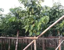 特殊技术处理:移栽过程中,为了保持大香樟树干的湿度,减少从树皮蒸腾的水分,要对树干进行浸湿草绳缠绕包裹直至到主干顶部,如果分枝较大也要进行缠绕。接着,再将调制的粘土泥浆厚厚地糊满草绳缠绕着的树干。以后,可经常用喷雾器为树干喷水保湿。在大香樟掘起后,还要对断根、破根和枯根进行修剪,剪后再用粘土泥浆浸裹树根;泥浆中如果加入0.03%的奈乙酸生长素,可以促进大香樟移植后的新根的生长。