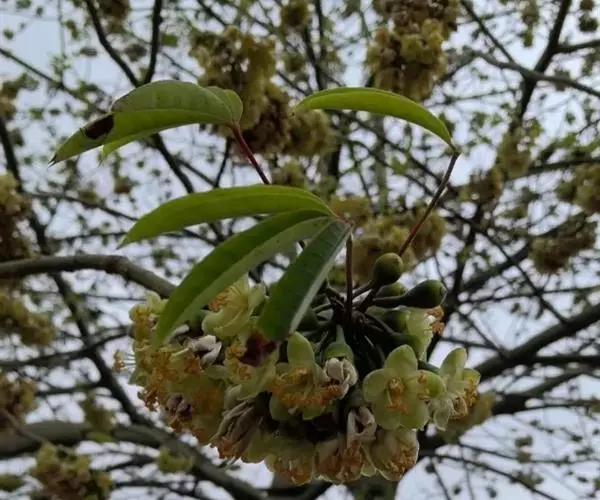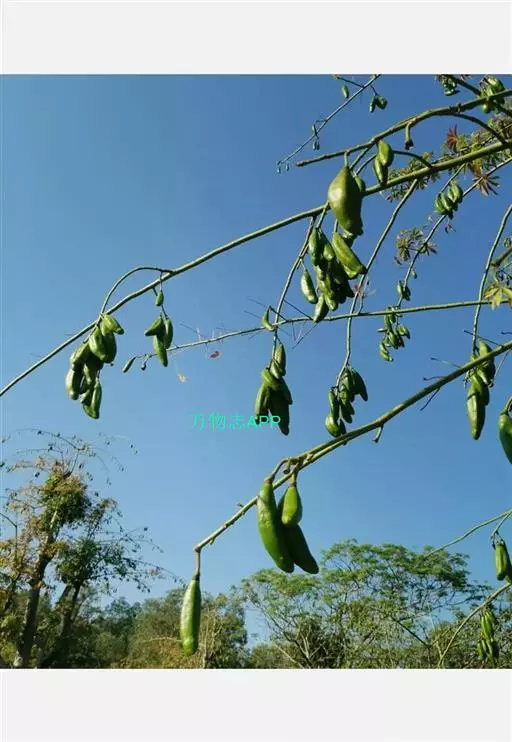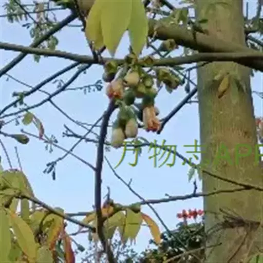 蒴果长圆形,向上渐狭,长7.5-15cm,粗3-5cm,果梗长7-25cm,5裂,果爿内面密生丝状绵毛,种子圆形,种皮革质、平滑。花期3-4月。