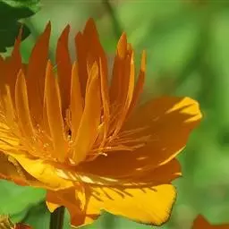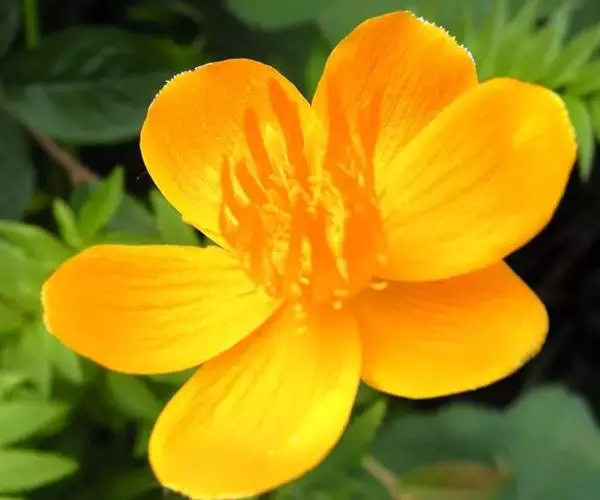 金莲花,别名:旱荷、旱莲花寒荷、陆地莲、旱地莲、金梅草、金疙瘩;学名:Trollius chinensis Bunge是毛茛科金莲花属的植物。一年生或多年生草本。株高30-100厘米。茎柔软攀附。叶圆形似荷叶,花形近似喇叭,萼筒细长,常见黄、橙、红色。有变种矮金莲,株形紧密低矮,枝叶密生,株高仅达30厘米,极适宜盆栽观赏,花期2-5月。是很好的装饰用花卉,也可构成窗景。具药用功能,可清热解毒,主治扁桃体炎、中耳炎,。用于急、慢性扁桃体炎,急性中耳炎,急性鼓膜炎,急性结膜炎,急性淋巴管炎。