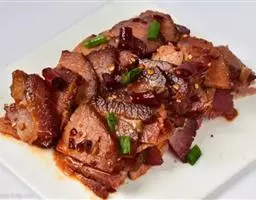 五花肉、茶树菇、冰糖、酱油、料酒、盐、八角、桂皮、葱、姜、干辣椒、香叶。