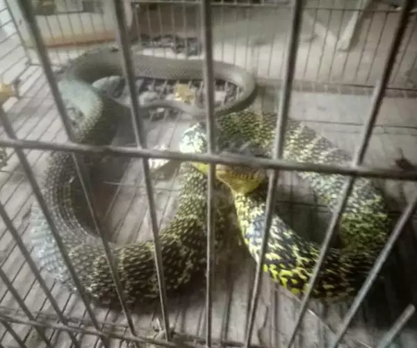 王锦蛇体大,耐寒、适应性强、生长快、饲养周期短,容易饲养和孵化等诸多优点,特别是北方诸省区,大都以养它作为无毒蛇的饲养对象。王锦蛇,又称菜花蛇,大王蛇、蛇王、臭黄颌等。它是无毒蛇中(除蟒蛇外)长势最快,形体较大的蛇类。栖息在山地,平原及丘陵地带,活动于河边、水塘边、库区及其他近水域的地方。