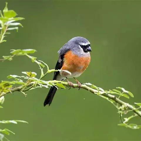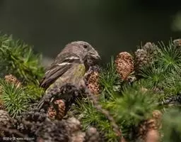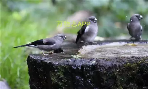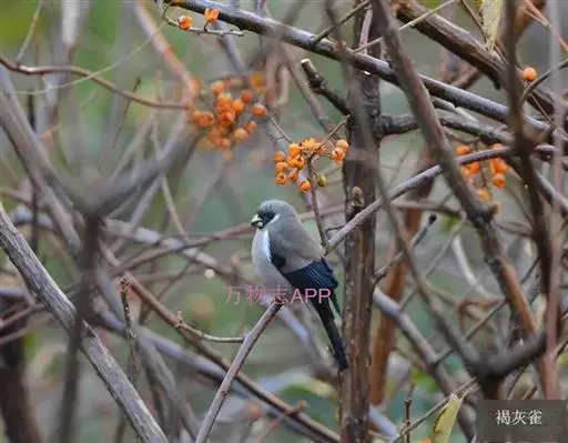 褐灰雀(学名:Pyrrhula nipalensis):小型鸟类,体长16-17厘米。上下体羽灰褐色,头顶各羽中央较暗,形成鳞状斑,眼先、眼周和嘴基黑褐色,眼下有一白斑。腰白色,两翅和尾黑色,最内侧一枚飞羽外翈羽缘赤红色。雌鸟和雄鸟相似,但最内侧一枚飞羽外翈为草黄色而不为赤红色。特征明显,野外容易识别。