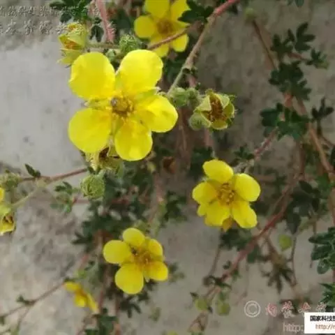 金露梅 Rydb.),蔷薇科金露梅属植物。灌木,高0.5~2米,多分枝,树皮纵向剥落。羽状复叶,…
