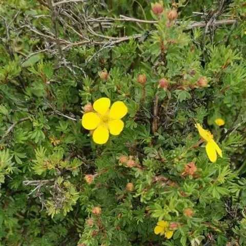银露梅 Soják)是蔷薇科,金露梅属灌木,高可达2米,树皮纵向剥落。小枝红褐色,羽状复叶,…