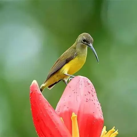 雀形目、太阳鸟科、太阳鸟属鸟类的通称。体型纤细,嘴细长而下弯,…