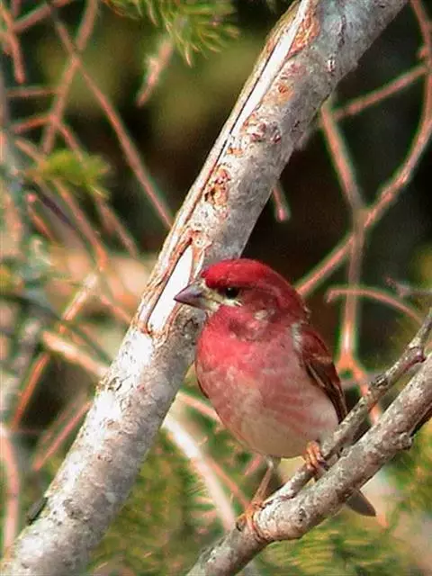 藏朱雀:全长约17-18厘米。雄鸟头部深红色具光辉,喉部暗红色具白色点斑;背部灰白色,各羽具玫瑰红…