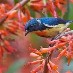 红胸啄花鸟:体重5-10克,体长60-92毫米。体形纤小。雄鸟上体呈辉亮的金属绿色;下体棕黄,…