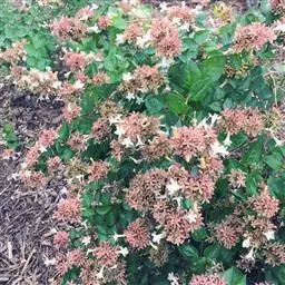 大花六道木,忍冬科六道木属半常绿矮生灌木。其幼枝为红褐色,有短柔毛;叶片倒卵形为墨绿色,…