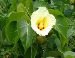 蒴果近梨形,长9-10厘米,直径4-6厘米,果皮厚,木质,几黄褐色,外面无毛,内面密被长绵毛,开裂,每室种子多数。种子大,不规则的梯状楔形,长2-2.5厘米,宽1-1.5厘米,