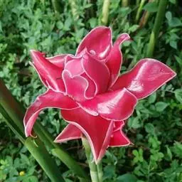 瓷玫瑰是姜科艳山姜属多年生草本植物,植株丛生,株高3-7米,叶互生,二行排列,长圆状披针形,叶色深…