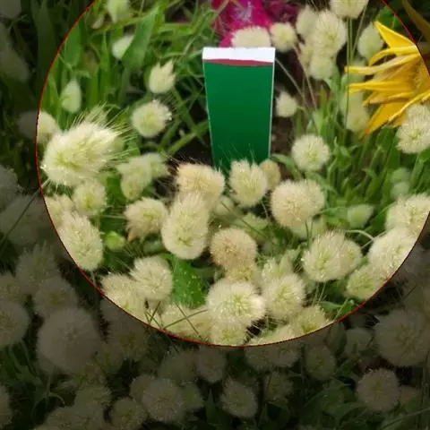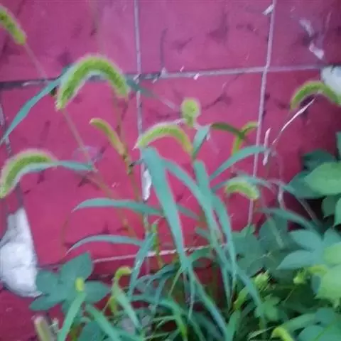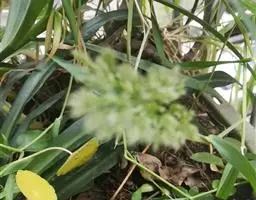 圆锥花序圆柱状,灰绿色,长4-15厘米,宽5-6毫米;小穗长圆形;颖膜质,长约3毫米,具3脉,脊上具硬纤毛,顶端平截,具长0.5-1毫米的尖头;外稃薄膜质,长约2毫米,具7脉,脉上具微毛,顶端钝圆;内稃略短于外稃;花药长约1.5毫米。