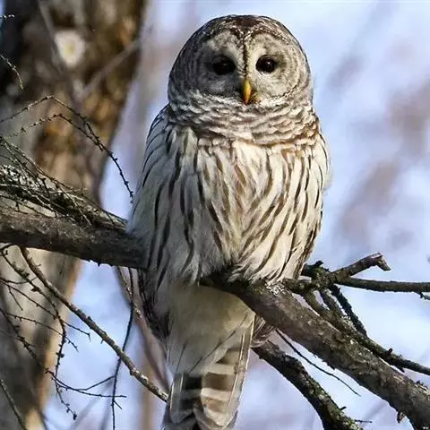 灰林鸮是鸱鸮科、林鸮属鸟类。体长约40厘米;头大而圆,没有耳羽,面盘明显,橙棕色或黑褐色;上体暗灰色,…