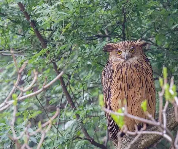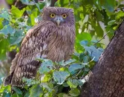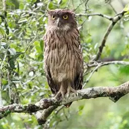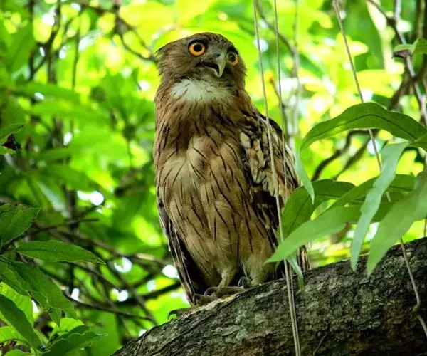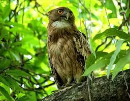 黄脚渔鸮,学名:Ketupa flavipes ,别名有黄鱼鸮等,属于脊索动物门,鸟纲,鸮形目,鸱鸮科鸟类。体型硕大(61厘米)的棕色渔鸮。具耳羽簇,眼黄,具蓬松的白色喉斑, 叫声是深沉的whoo-hoo叫声及猫样喵叫。