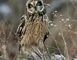 短耳鸮又名小耳木兔、田猫王、夜猫子等,是鸮形目鸱鸮科耳鸮属中小型猛禽动物。成鸟面盘显著,…