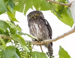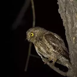 黄嘴角鸮:小型鸟类,体长18-21厘米。的茶黄褐色角鸮。眼黄色,嘴奶油色,特征为无明显的纵纹或横斑,…
