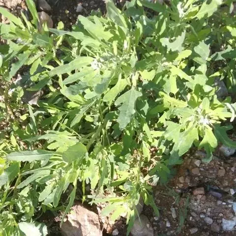 狭叶尖头叶藜Chenopodium acuminatum Willd.藏药喔萘:全草治疮伤《中国藏药》。全草:用于风寒头痛,四肢胀痛。
