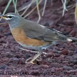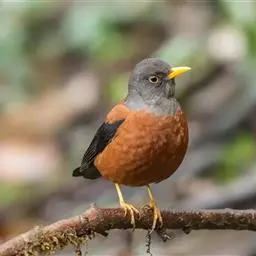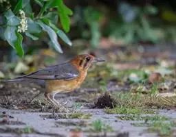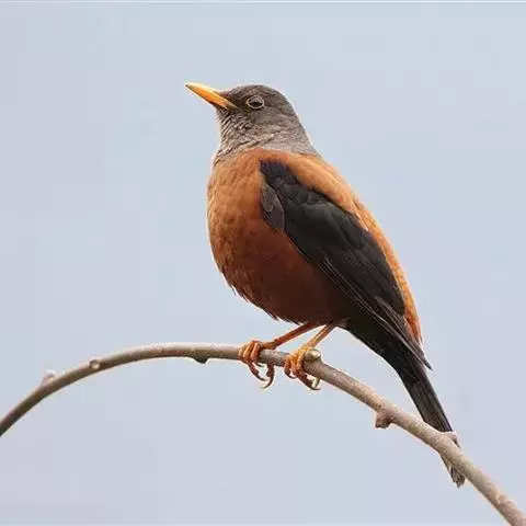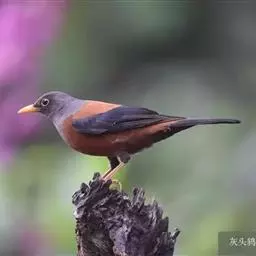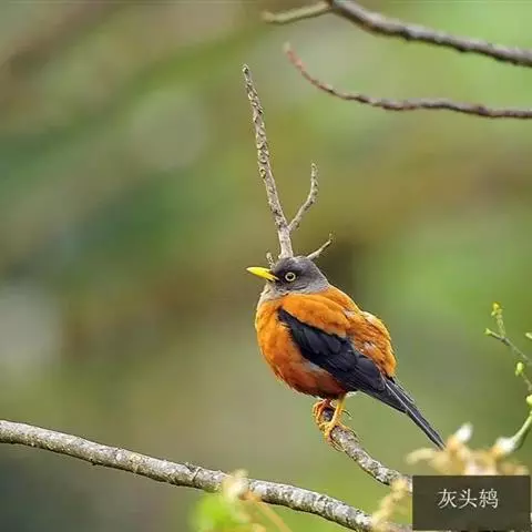 灰头鸫:中型鸟类,体长23-27厘米。整个头、颈和上胸褐灰色,两翅和尾黑色,上、下体羽栗棕色。…