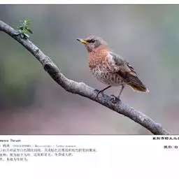 白眉歌鸫,是雀形目鸫科鸫属鸟类。体型略小并具有褐色斑点的歌鸫,上体橄榄褐色,眉纹白色,脸部斑驳,…