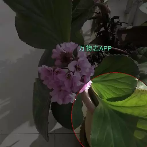 岩白菜〔学名:Bergenia purpurascens (Hook. f. et Thoms.) Engl.〕是虎耳草科,岩白菜属多年生草本植物,高可达52厘米。根状茎粗壮,叶均基生;叶片革质,先端钝圆,边缘具波状齿至近全缘,基部楔形,两面具小腺窝,托叶鞘边缘无毛。聚伞花序圆锥状,花葶疏生腺毛。萼片革质,近狭卵形,花瓣紫红色,阔卵形,子房卵球形,5-10月开花结果。