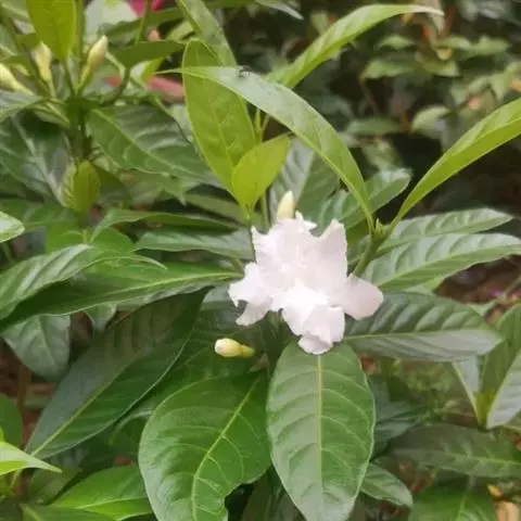 狗牙花 R. Br. ex Roem. & Schult.)是夹竹桃科山辣椒属灌木植物;枝灰绿色;叶椭圆形或椭圆状长圆形,叶面深绿色,背面淡绿色,叶面扁平;花聚伞花序腋生,通常双生,萼片长圆形,边缘有缘毛,花冠白色;果长圆形;花期六至十一月;果期秋季。狗牙花因其花冠裂片边缘有皱纹,状如狗牙,故名。狗牙花原产于印度及中国云南,在广西、广东、台湾及亚洲热带和亚热带等地区广泛栽培。狗牙花喜温暖湿润,不耐寒,宜半阴,对土壤要求不严,喜肥沃、排水良好的酸性土壤,常生长于山地灌木丛中。狗牙花的主要繁殖方式为扦插。狗牙花味酸、凉,有清热降压、解毒消肿的功效,可用于治疗咽喉肿痛,跌打损伤。狗牙花枝叶茂密,株型紧凑,花朵净白素丽,典雅朴质,盛花时十分美观,且花期长,具有一定观赏价值。狗牙花还有较高的经济价值,园林中应用极为普遍,可丛植于林缘、路