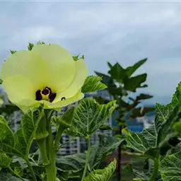 咖啡黄葵 Moench)亦称黄秋葵,是锦葵科一年生草本植物。茎圆柱形,疏生散刺。叶掌状,裂片阔至狭,…