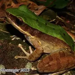 树蛙是树蛙科两栖动物的统称。树蛙体中等或大,一般雄蛙吻端斜尖,雌蛙吻端高钝;舌后端缺刻深,梨骨齿发达,…