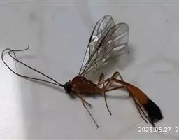 金环胡蜂是胡蜂科、胡蜂属昆虫。雌蜂体长约40毫米,工蜂体长25毫米,雌蜂体黑褐色,头部橙黄色,…
