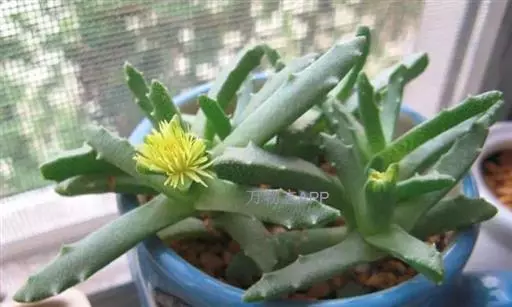 照波,番杏科多肉植物、 此种生长较快,栽培容易,细长的浓绿色叶3厘米左右,开黄色花。…