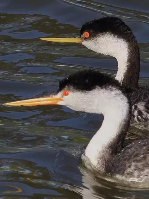 北美鸊鷉:体长约56至74厘米,体重1400克,是鸊鷉中最大的一种。头冠与颈背部为黑色,背部是褐灰…