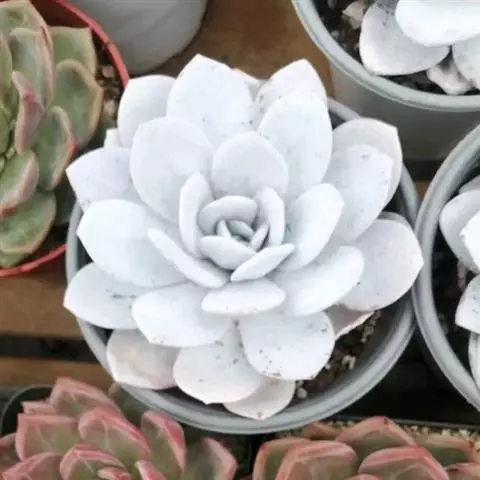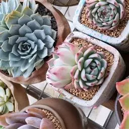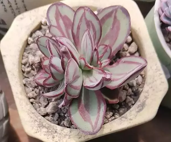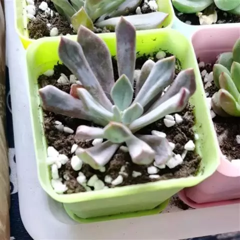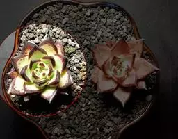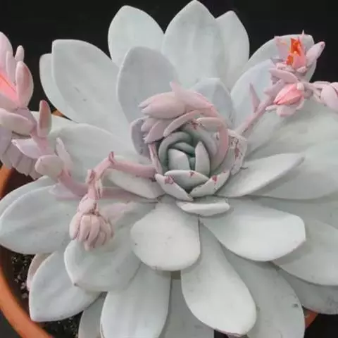 大和锦是景天科拟石莲花属的多肉植物。肉质叶排成紧密的莲座状,广卵形至散三角卵形,背面突起呈龙骨状,…