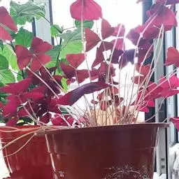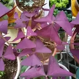 多年生草本,地下块茎粗大。叶丛生,具长柄,掌状复叶,小叶 3枚,无柄,倒三角形,深紫色。紫叶酢浆草…