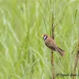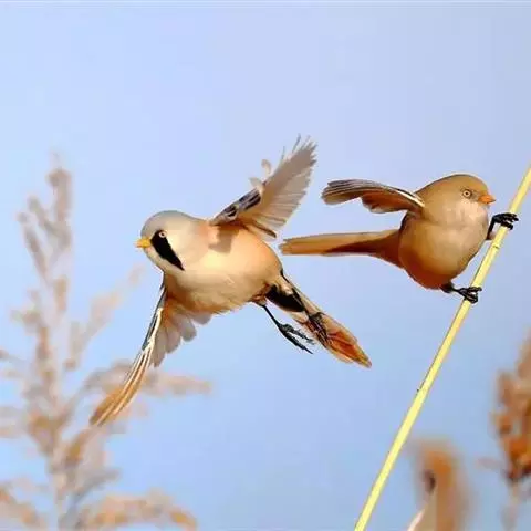 文须雀,别称髭雀、文须山雀,属雀形目、鹆鸟科、画眉亚科。眼先及髭纹黑色,头顶暗灰,…