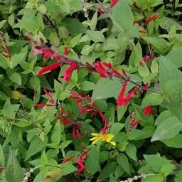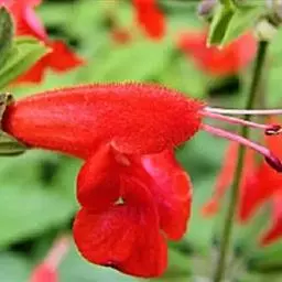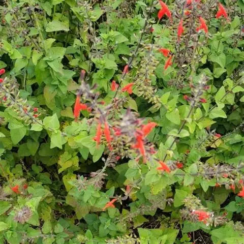 樱桃鼠尾草(学名:Salvia greggii),唇形科鼠尾草属多年生草本植物,原产于美国德州至墨西哥,单叶对生,披针形、椭圆形或卵形,锯齿叶缘,总状花序,花萼合生,钟状,二唇形,宿存,花冠唇形,有桃红、深红、粉红、杏黄、白色等。樱桃鼠尾草的草叶散发出淡淡的樱桃香味 ,因而得此别名 。叶片一般不食用,常作香包等芳香用途。