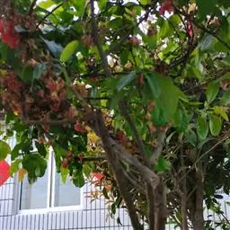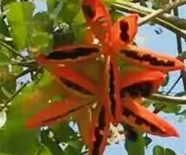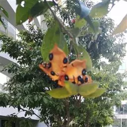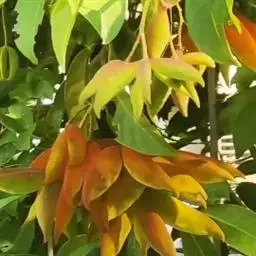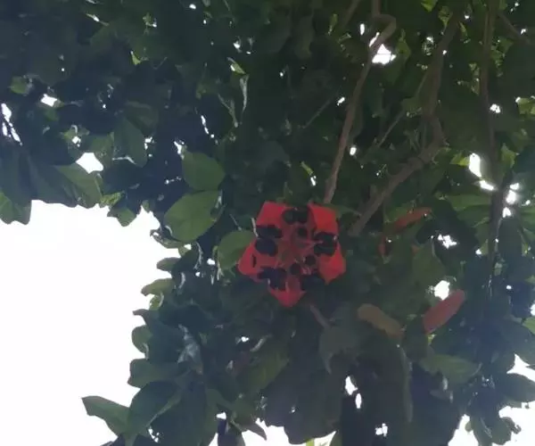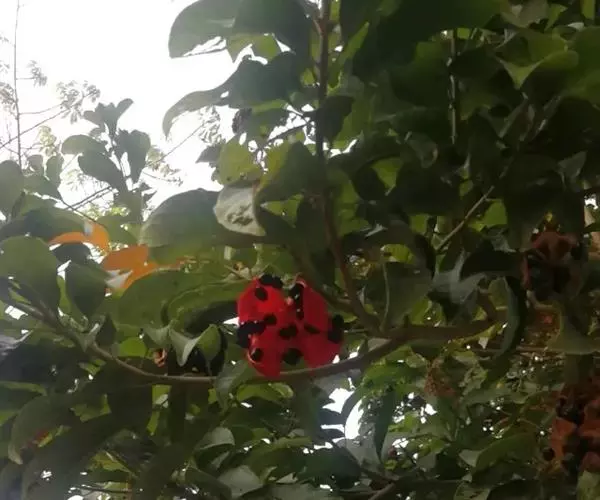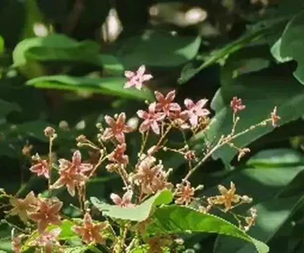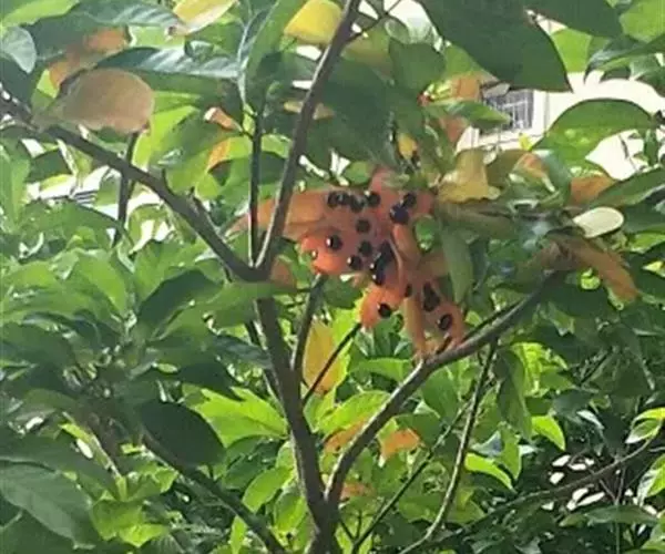 花:苹婆花则是奶黄色,5裂,单性或双性,雌雄同株,形态有点像细小灯笼;而假苹婆花为淡红或淡粉红色,五辨,形态为星型。