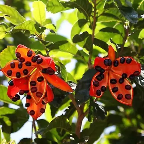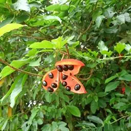 选择15年生以上的生长健壮、无病虫害的母树采种。7-8月果熟,果实成熟时鲜红色,果壳微裂。用钩刀或人工上树剪下果枝,采取果实。采回果实摊放于通风处1-2天,让其自然开裂或用力压裂,剥取种子。种子忌脱水,忌日晒,应随采随播,不耐贮藏。贮藏需混以湿沙,贮藏期1个月以内。种子干粒重700-850克,新鲜种子发芽率95%以上。