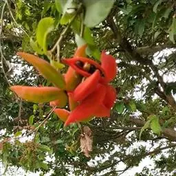 假苹婆(学名:Sterculia lanceolata Cav.)是梧桐科苹婆属植物,乔木,小枝幼时被毛。叶椭圆形、披针形或椭圆状披针形,顶端急尖,基部钝形或近圆形,上面无毛,下面几无毛;叶柄长2.5-3.5厘米。圆锥花序腋生,长4-10厘米,密集且多分枝;花淡红色,萼片5枚。蓇葖果鲜红色,长卵形或长椭圆形,顶端有喙,基部渐狭,密被短柔毛;种子黑褐色,椭圆状卵形,直径约1厘米。每果有种子2-4个。花期4-6月。