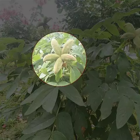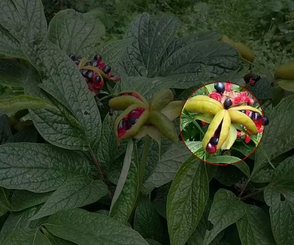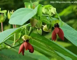 圆锥花序腋生,长4-10厘米,密集且多分枝;花淡红色,萼片5枚,仅于基部连合,向外开展如星状,矩圆状披针形或矩圆状椭圆形,顶端钝或略有小短尖突,长4-6毫米,外面被短柔毛,边缘有缘毛;雄花的雌雄蕊柄长2-3毫米,弯曲,花药约10个;雌花的子房圆球形,被毛,花柱弯曲,柱头不明显5裂。蓇葖果鲜红色,长卵形或长椭圆形,长5-7厘米,宽2-2.5厘米,顶端有喙,基部渐狭,密被短柔毛;种子黑褐色,椭圆状卵形,直径约1厘米。每果有种子2-4个。花期4-6月。