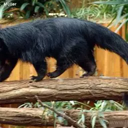 熊狸别名熊灵猫,为灵猫科下的第二大物种。貌似小黑熊,长着一条与身长差不多长的粗壮尾巴。其体毛黑色蓬松,…