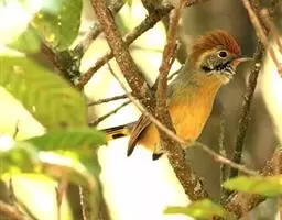 金眼鹛雀是莺科、鹛雀属小型鸟类。体长16-20厘米。头顶和上体棕褐色,两翅表面肉桂红色,…