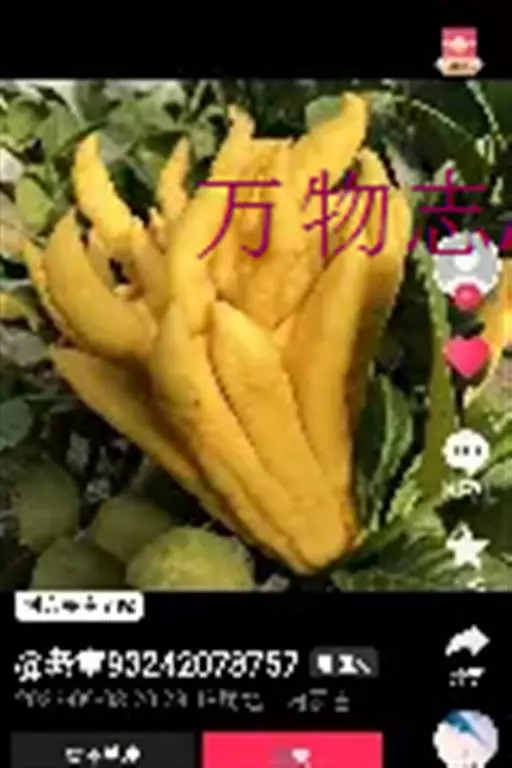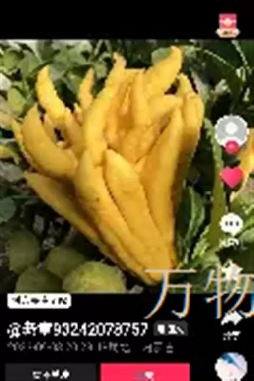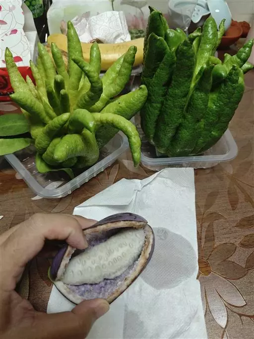 柑果卵形或矩圆形,长10~25厘米,顶端分裂如拳,或张开如指,外皮鲜黄色,有乳状突起,无肉瓤与种子。