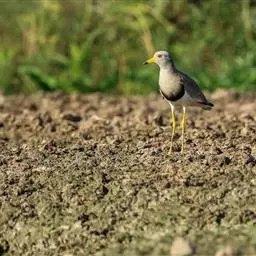 灰头麦鸡是鸻形目鸻科麦鸡属鸟类,繁殖期头、颈及胸灰色;胸部和腹部之间有黑色胸带分隔;背部及两翼大部分覆羽褐色;腹部和腰部白色;尾羽基部及边缘白色,近末端有黑色斑块。非繁殖期头颈部染褐色,颏及喉部白色,胸带不明显。初级飞羽黑色,其余飞羽及与之相邻的部分覆羽白色;虹膜红褐色,眼圈黄色;嘴尖段黑色,后段黄色;腿和脚黄色。灰头麦鸡分布于欧亚大陆及非洲北部、中南半岛以及太平洋诸岛屿,在中国分布于东南沿海地区。栖息于丘陵、平原地区河流、湖泊和沼泽等水体附近。繁殖期成对活动,其余时间集群活动。主要啄食甲虫、蝗虫、蚱蜢等昆虫,也吃水蛭、螺、蚯蚓、软体动物和植物叶片及种子。繁殖期为5—7月,1年繁殖1窝,每窝产卵4枚。灰头麦鸡被列入中国国家林业局发布的《国家保护的有益的或者有重要经济、科学研究价值的陆生野生动物名录》。