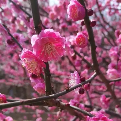 宫粉梅 Rehd.)是蔷薇科、李属植物,梅花品系中真梅系直枝梅类宫粉型,其花复瓣至重瓣,…