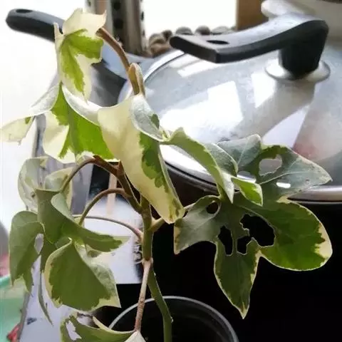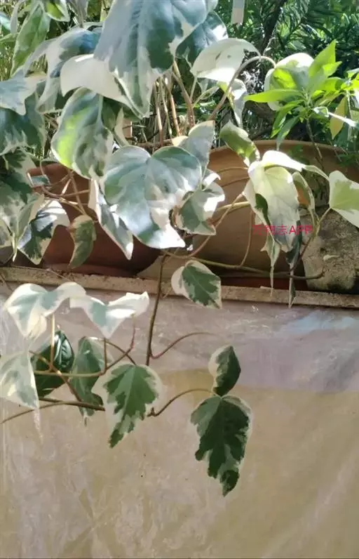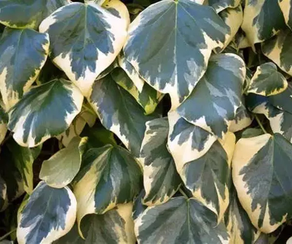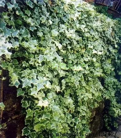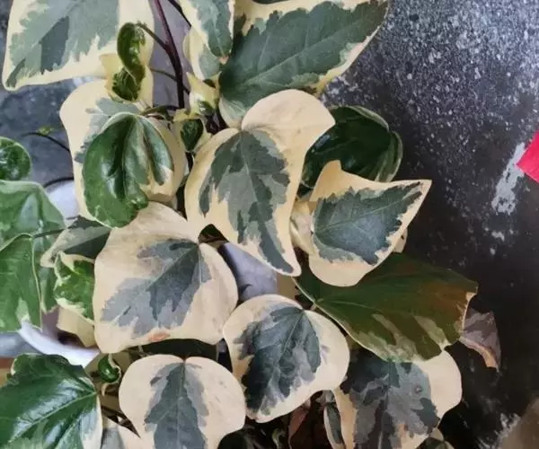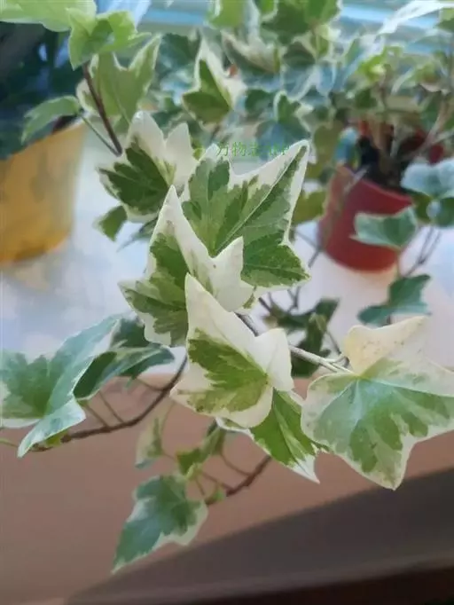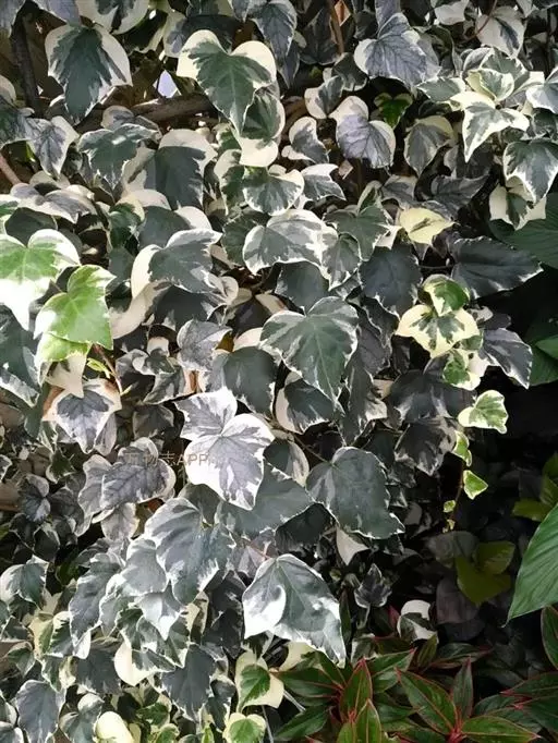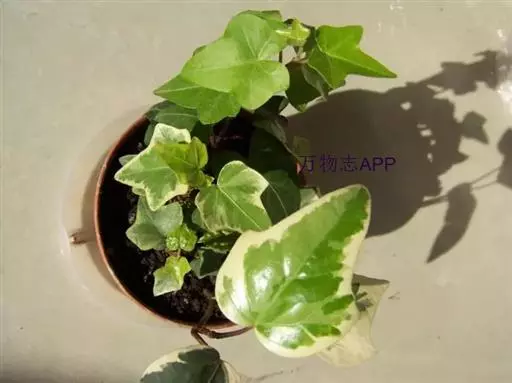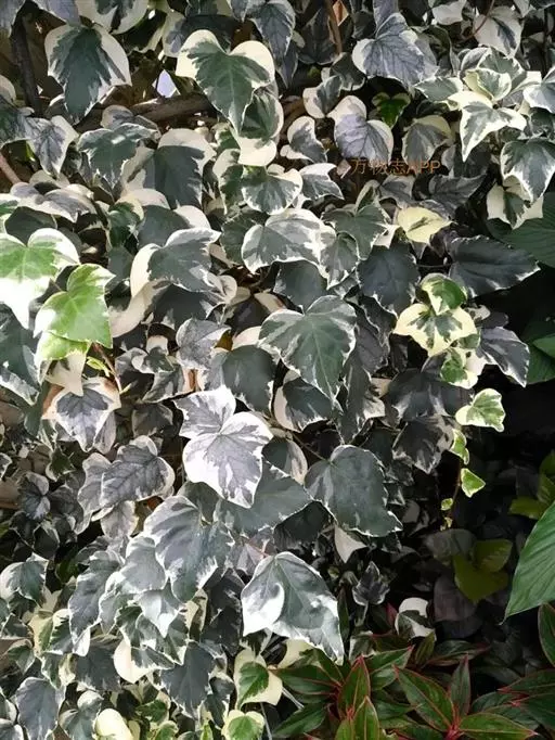 5、彩叶常春藤‘Discolor’叶较小,乳白色,带红晕。