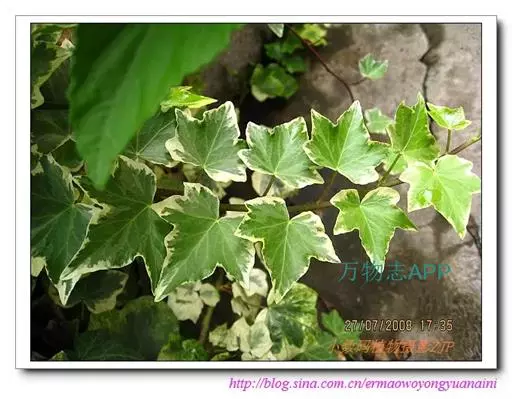 3、斑叶常春藤‘Argenteo-variegata’叶有白斑纹。