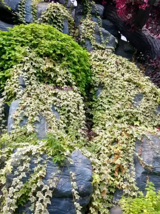6、三色常春藤‘Tricolor’(‘Marginata-rubra’)绿叶白边,秋后叶变深玫瑰红色,春暖后又恢复原状。