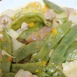 炒豌豆夹 红烧牛腩 蚕豆炒虾仁 凉粉鲫鱼。